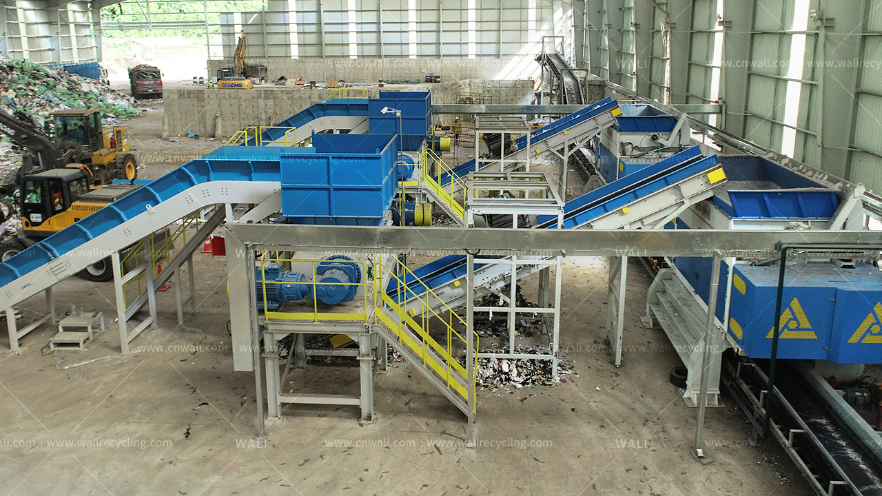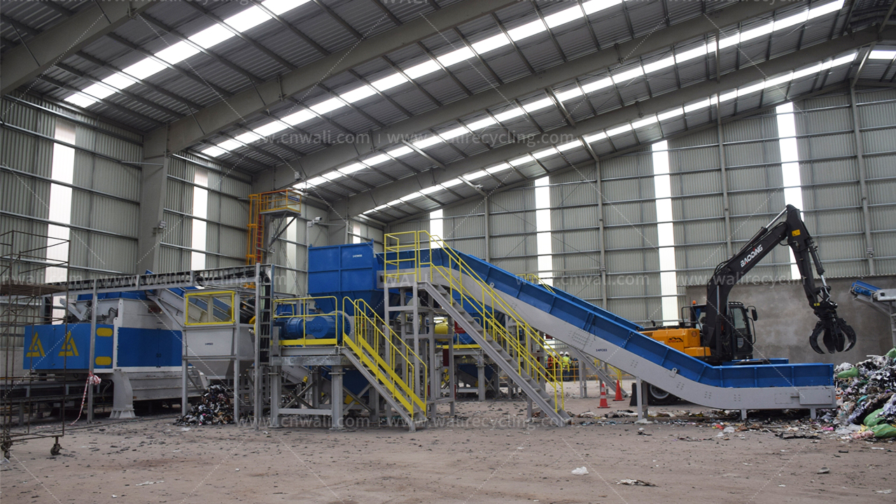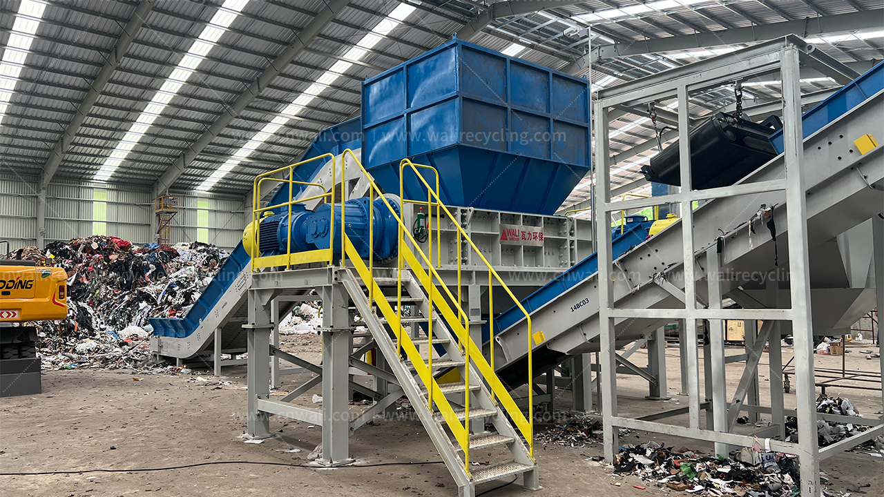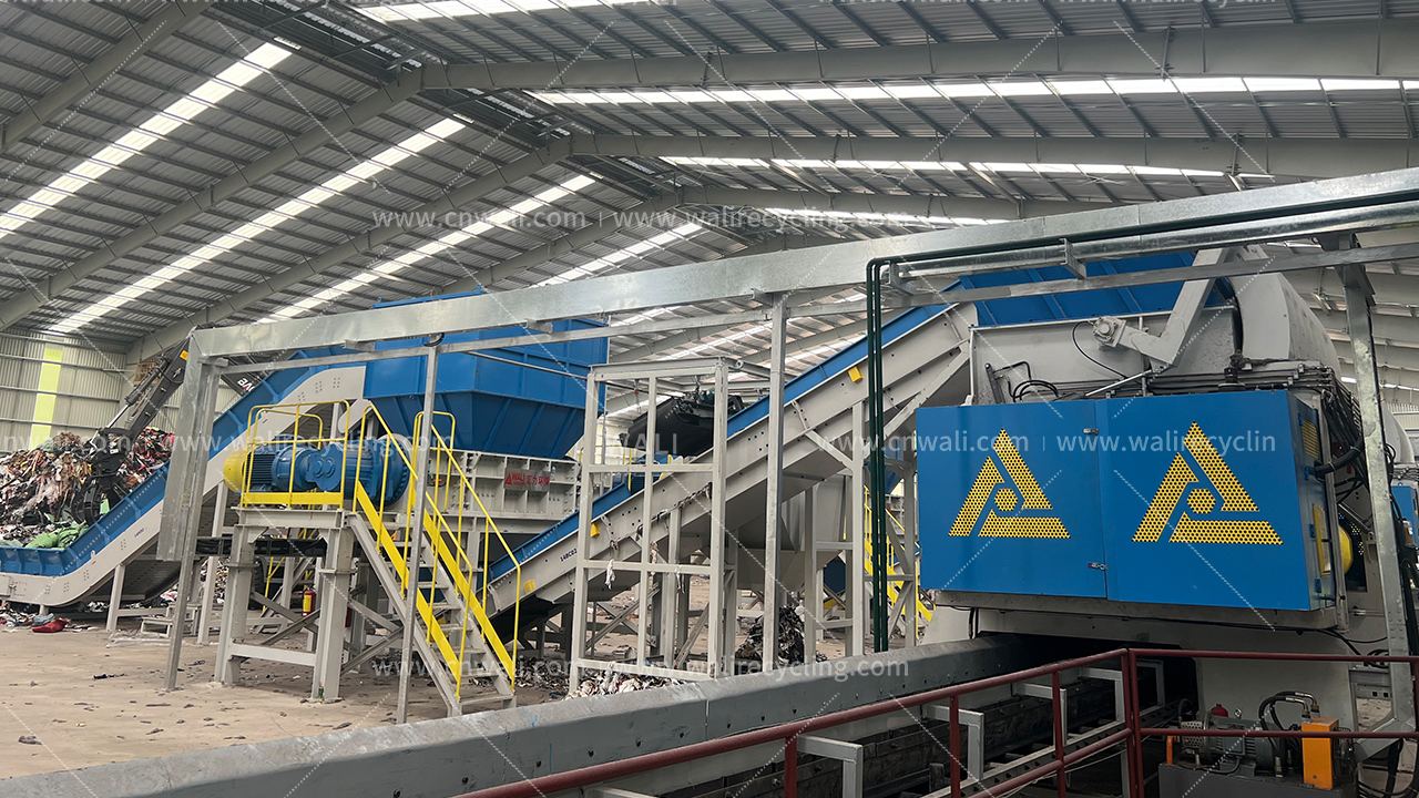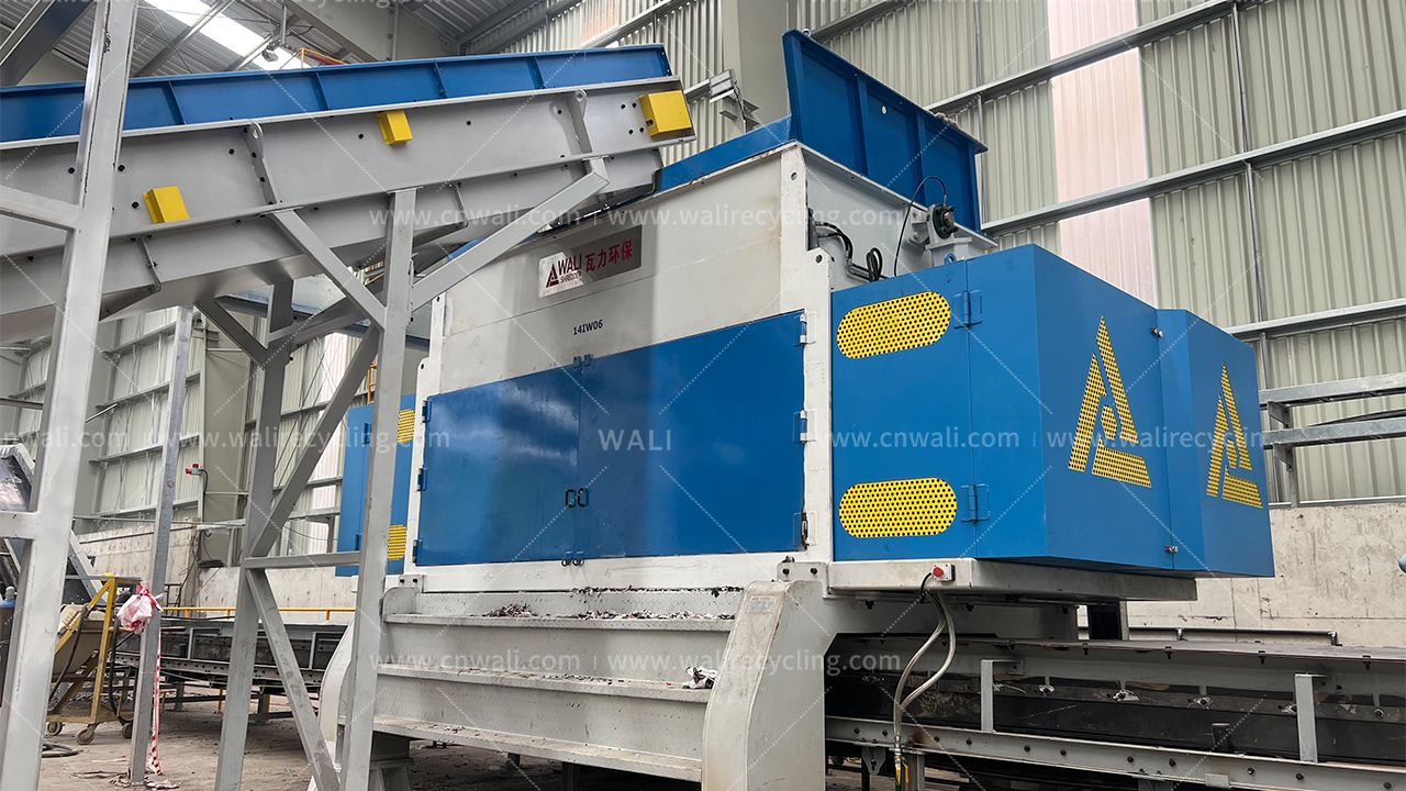 · 主要设备:WLP双轴剪切式撕碎机,DX单轴撕碎机,磁选机,链板输送机